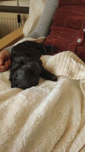 Ze is ons speciaaltje. Black beauty Bodhi. Met haar prachtige glimmende vachtje wat groeit en steeds meer krul krijgt, haar ienieminie nageltjes die al een keertje geknipt zijn, haar kleine kraaloogjes die steeds meer vorm krijgen en inmiddels open zijn gegaan, schattige oorflapjes die groeien en waarmee ze inmiddels kan horen, haar stevige pootjes welke steeds stabielere stapjes gaan zetten.