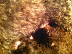 Als toetje en tussendoor krijgen ze nog voeding van Fay. Zij blijft nu staan bij het voeden, wat overigens nog niet altijd even gemakkelijk is met elf puppy’s die aan haar (willen) hangen. Fay moet zich echt schrap zetten, pootjes wijduit om stevig te staan, en het liefst met haar billen tegen de rand van de werpkist aan voor steun. Ze lijkt nu net een melkmachine 😉.