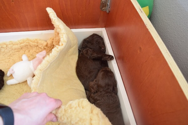 We zijn aangekomen in de Primaire Socialisatiefase. Misschien wel de meest belangrijke fase van een hond. Hij leert wie en wat hij zelf is en wie zijn soortgenoten zijn. Alles wat de pup nu meemaakt wordt ervaren als normaal en wordt nooit meer vergeten. Dus stofzuig ik rustig langs de pupjes die daar zonder problemen doorheen slapen, zijn er allerlei geluiden in huis die bij een gezinsleven horen waar ze niet van op of om kijken en komen er inmiddels veel bezoekers langs in alle maten en soorten 😉. Langzaam zullen wij de komende weken de prikkels en ervaringen gaan uitbreiden. Zodat ze goed toegerust over een maand naar hun nieuwe thuis kunnen gaan. Waar de socialisatie uiteraard nog lang niet stopt maar doorgaat tot ze zeker een half jaar oud zijn.