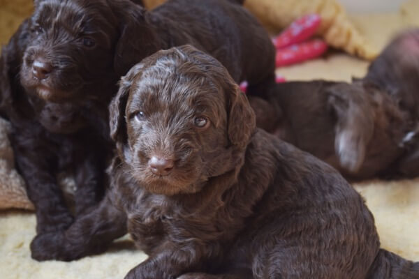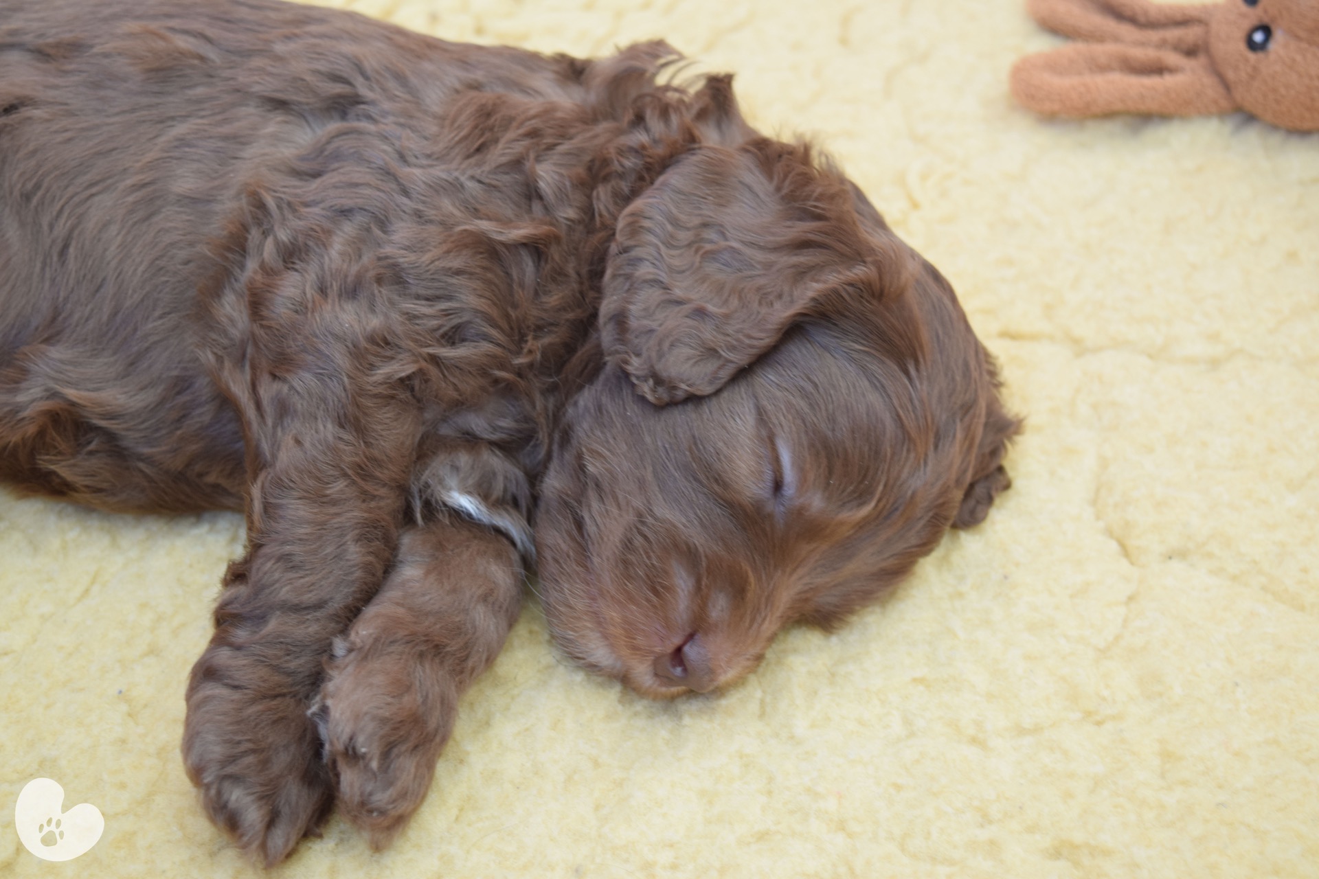 De pupjes leren nu niet alleen wat hun omgeving betekent, maar beginnen nu ook de hondentaal te leren. Ze oefenen door middel van spel dat ze niet al te hard mogen bijten, want dan spelen je broertjes en zusjes niet meer met je. Je ziet al wat uitdagingen en machtsvertoon en ook onderdanigheid. Allemaal oefenen voor later. En mama Fay is de spelleider en bepaalt de grenzen. Het is nu nog allemaal erg lief en onschuldig. Huppeltjes en hopjes, woefjes en blafjes en soms een speels grommetje. Fay heeft het nu nog gemakkelijk. Maar nog maar eventjes en dan wordt het wat serieuzer en zal ze meer moeten ingrijpen als het haar te gek gaat. Maar laat dat maar aan haar over! Fay is een fantastische mama in opvoeden!